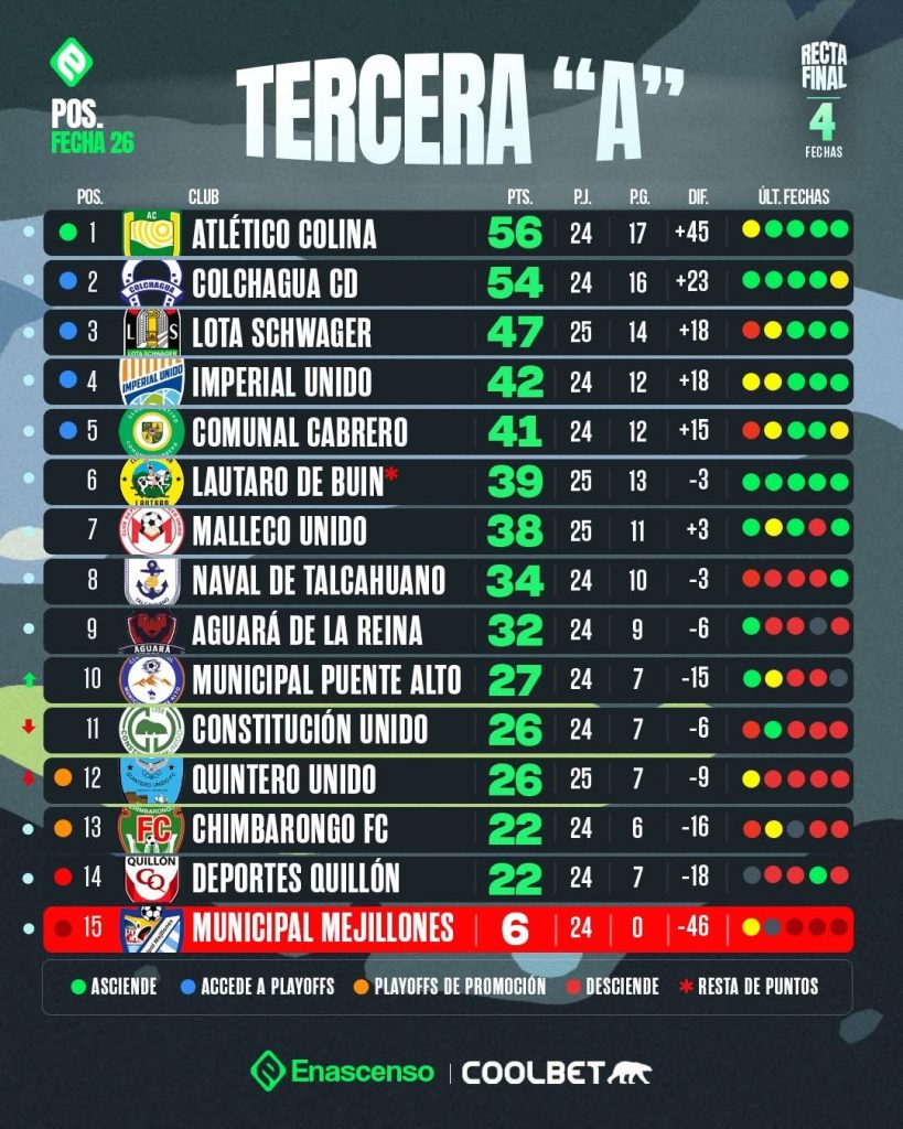 Malleco le quedan solo tres encuentros; Lautaro de Buin de visita, Atlético Colina en el Larraguibel, luego en la décima cuarta fecha queda libre para finalizar su participación en el presente torneo, enfrentando en el clásico de la Araucanía a Imperial Unido.
