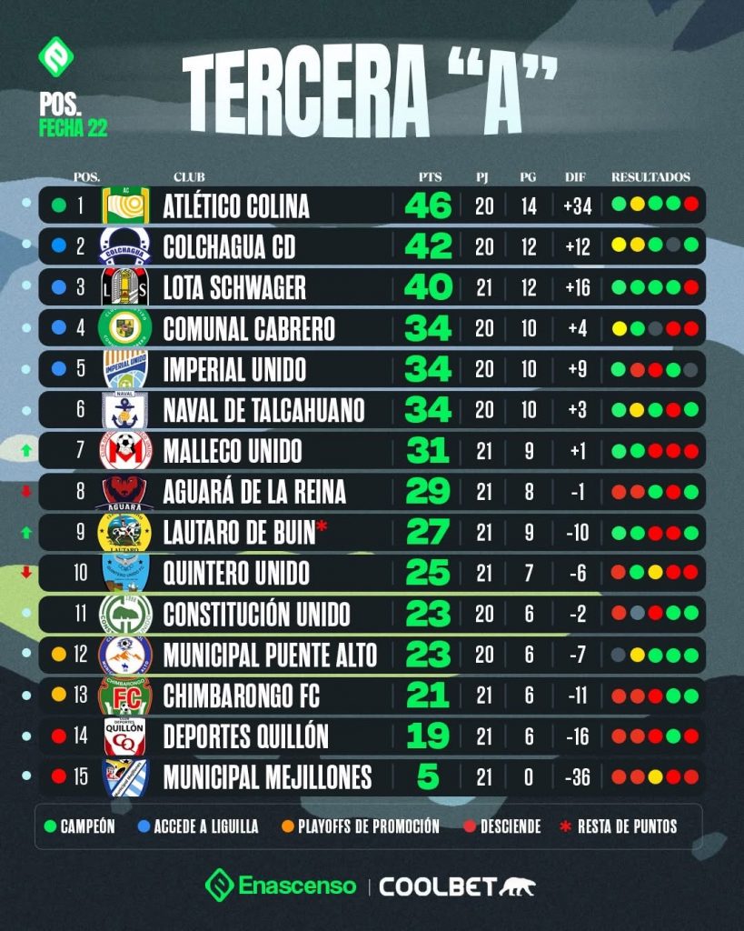 Lautaro de Buin – Municipal Chimbarongo * Quintero Unido – Lota Schwager * Malleco Unido – Colegio Quillón. Libre: Aguará.